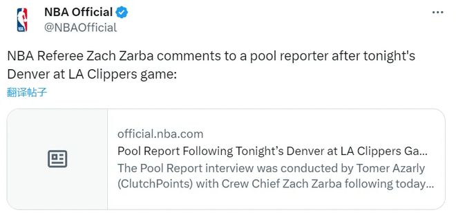北京时间4月27日,NBA季后赛首轮G4,掘金客场101-99力克快船,大比分扳成2-2平。本场比赛出现了冲突技犯和压哨绝杀的话题,赛后当值主裁扎巴回应了这些疑问。