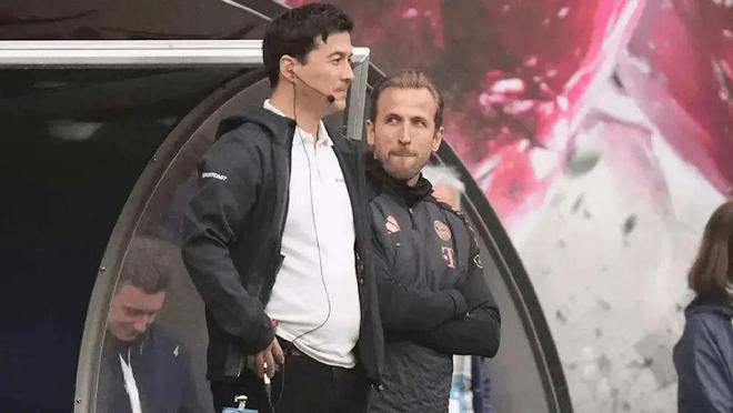 随后曾效力于曼城的萨内也打入一球,拜仁反超比分。眼看着心念念的生涯首个重大锦标即将到手,德甲官方也是破例让凯恩来到场边等候属于自己的珍贵时刻。
